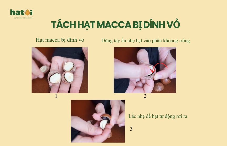 Cách này thường chỉ áp dụng cho loại hạt macca nứt vỏ hoặc hạt đã qua xử lý sấy khô kỹ lưỡng. Đây là lúc bạn tận dụng các kẽ hở siêu nhỏ trên cấu trúc vỏ.